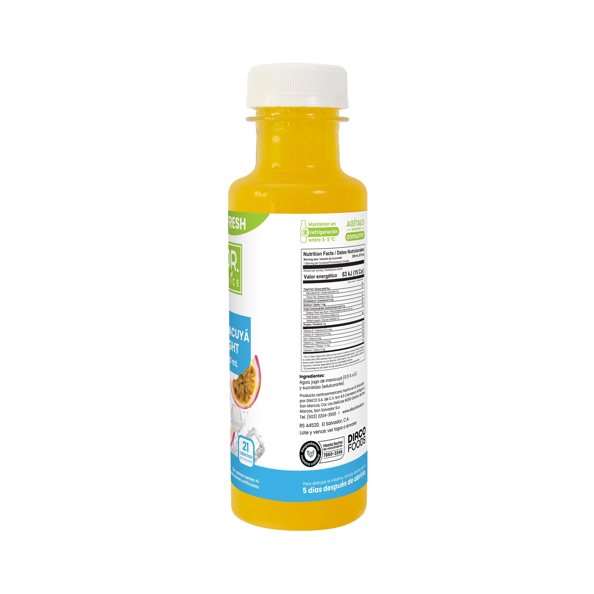 Ingredientes: Pulpa de maracuyá, agua y sucralosa